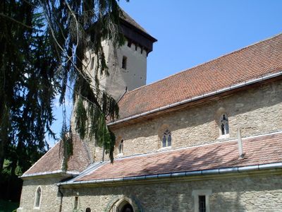 A igreja luterana fortificada possui tres naves, um coro poligonal e uma torre ocidental. Muros e estruturas defensivas do seculo XV cercam o edificio inteiro.