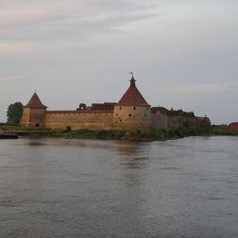 A fortaleza Oreshek ergue-se na pequena ilha Orekhovy onde o rio Neva inicia seu curso a partir do lago Ladoga. Sete torres cercam um pátio central, e as grossas muralhas de pedra ainda carregam marcas de cercos e batalhas passados.