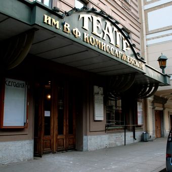 O teatro recebeu seu nome de Vera Komissarzhevskaya, que se apresentou com Vsevolod Meyerhold neste edifício entre 1904 e 1906.