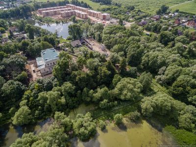 A Propriedade Konstantinovo localiza-se em uma margem elevada do rio Oka, cercada por jardins, edifícios rurais e área verde.