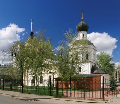 A Igreja da Dormição é um templo ortodoxo no distrito de Yakimanka com uma torre octogonal sobre base cúbica e campanil que exibe características do barroco moscovita. Um vestíbulo oferece acesso ao espaço principal de oração.