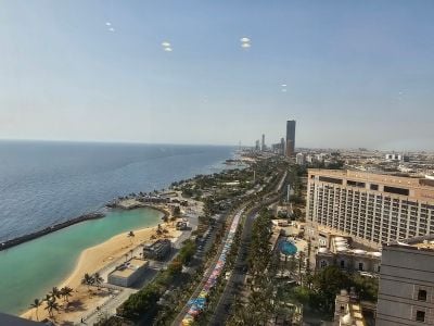 O Headquarters Business Park Tower é um edifício de escritórios na Corniche Norte de Jeddah com 52 andares que se elevam a 240 metros. A fachada de vidro se abre para a costa do Mar Vermelho, e o complexo contém espaços de escritórios, salas de reuniões e um estacionamento de 11 andares.