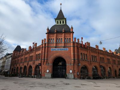 A halle de mercado abriu em 1888, projetada pelos arquitetos Isak Gustaf Clason e Kasper Salin. Após extensas renovações concluídas em 2020, o edifício ganhou características modernas mantendo seu layout original.