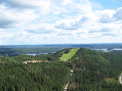 Isaberg eleva-se 309 metros acima do nível do mar, com florestas densas, lagos e uma rede de trilhas na paisagem do sul da Suécia.