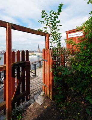 A entrada do parque conecta-se diretamente com Monteliusvägen, proporcionando acesso a trilhas panorâmicas e vistas da paisagem urbana de Estocolmo.