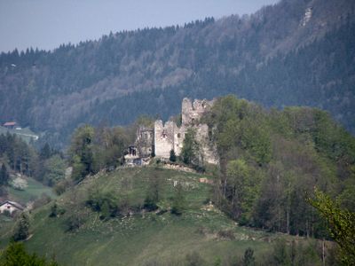 Gamberk Castle, Ruínas de castelo medieval em Ržiše, Eslovênia.