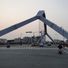 A ponte Dongmen é um arco de aço atravessando o rio Hanxi em Taichung, Taiwan. Áreas para pedestres percorrem ambos os lados da via de quatro faixas separada por um divisor central.