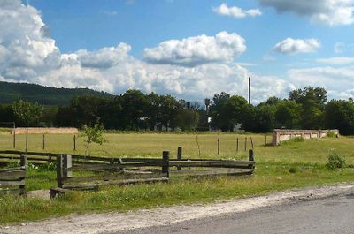Castle Białym Kamieniu é uma ruína de fortaleza medieval com um plano elíptico cercada por colinas florestadas. A estrutura contém duas torres defensivas, uma torre de portão com restos de ponte levadiça e seções preservadas da muralha de fortificação envolvente.
