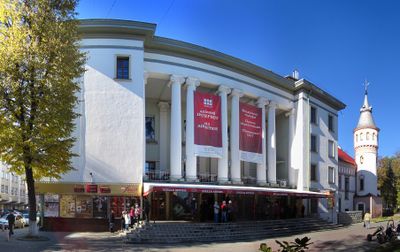 Cinema Lumière e um cinema em Ivano-Frankivsk com detalhes arquitetonicos e ornamentacoes na fachada dos anos 1920. No interior, o prédio possui salas com assentos e equipamentos de projeção adaptados para exibições de filmes.