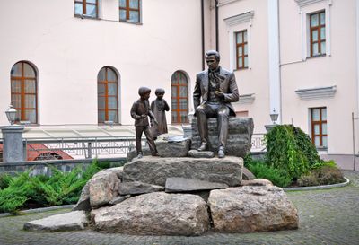 A estátua representa Shevchenko durante seu período criativo inicial, capturando o momento de reflexão do poeta e artista nacional da Ucrânia.