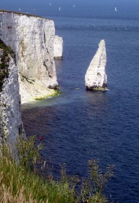 The Pinnacles, Formação de pilares de giz em Studland, Grã-Bretanha.