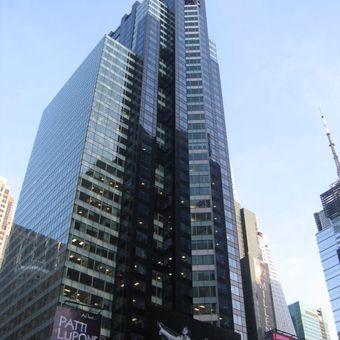 O Bertelsmann Building é uma torre de escritórios em Times Square que se eleva a 188 metros com 44 andares. A fachada apresenta painéis de vidro azul e verde combinados com elementos de alumínio vertical, conferindo-lhe um aspecto moderno.