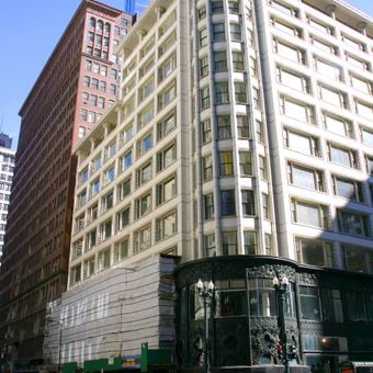 A entrada principal fica na esquina, enquanto pontos de acesso adicionais se alinham na State Street. Os andares inferiores abrigam lojas de varejo, enquanto os níveis superiores servem como espaço de escritórios.