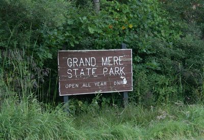 Grand Mere State Park é uma área natural protegida ao longo do lago Michigan abrangendo aproximadamente 985 acres, caracterizada por florestas densas, corpos de água interiores e dunas de areia altas. A paisagem inclui três lagos separados dentro de seus limites e os conecta a uma seção de praia ao longo da costa.