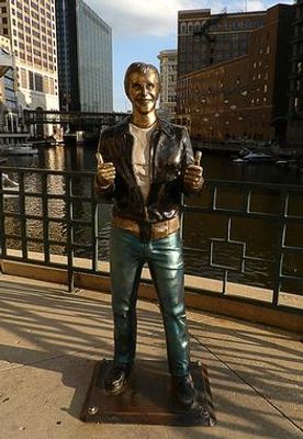 A Visit Milwaukee arrecadou doações em 2008 para colocar esta figura em bronze ao longo da margem do rio. A ideia surgiu porque a série de televisão Happy Days se passava em Milwaukee e a cidade ficou associada ao personagem Fonzie.