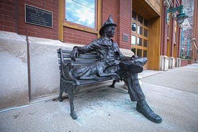 Michael Casper criou esta obra em bronze em 1990 por encomenda de Thomas M. Wamser para homenagear o serviço dos bombeiros locais de Milwaukee.