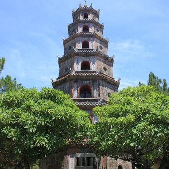 Nguyễn Hoàng, primeiro governante da Dinastia Nguyễn, ordenou a construção deste templo em 1601 para garantir a prosperidade de sua linhagem.