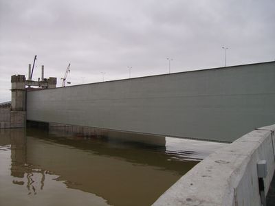 A barragem possui duas grandes aberturas para navegação e uma rodovia de seis faixas conectando as margens do golfo.