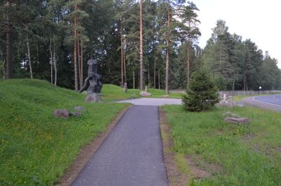 O Moloch do Totalitarismo ergue-se na entrada do Cemitério Levashovo, apresentando uma escultura em concreto que representa a natureza opressiva dos regimes totalitários.