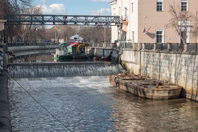 Yauza waterway lock, Eclusa fluvial no Distrito Lefortovo, Rússia.